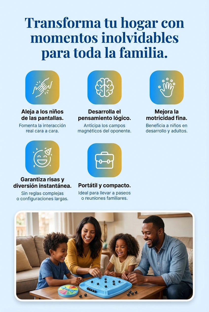Crea competencia real y risas en vivo.Hace que todos suelten el teléfono y se enfoen en ganarle al otro.