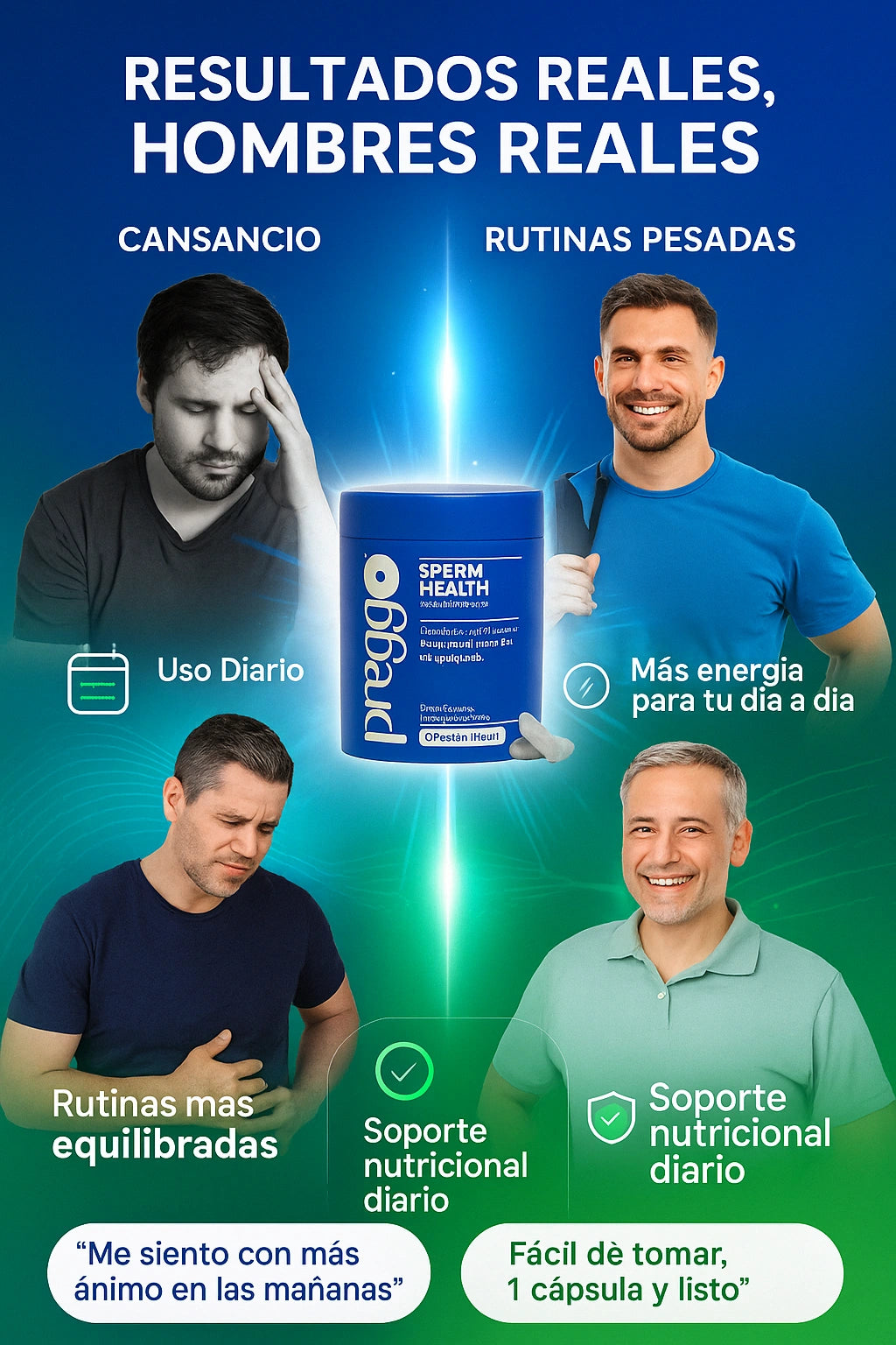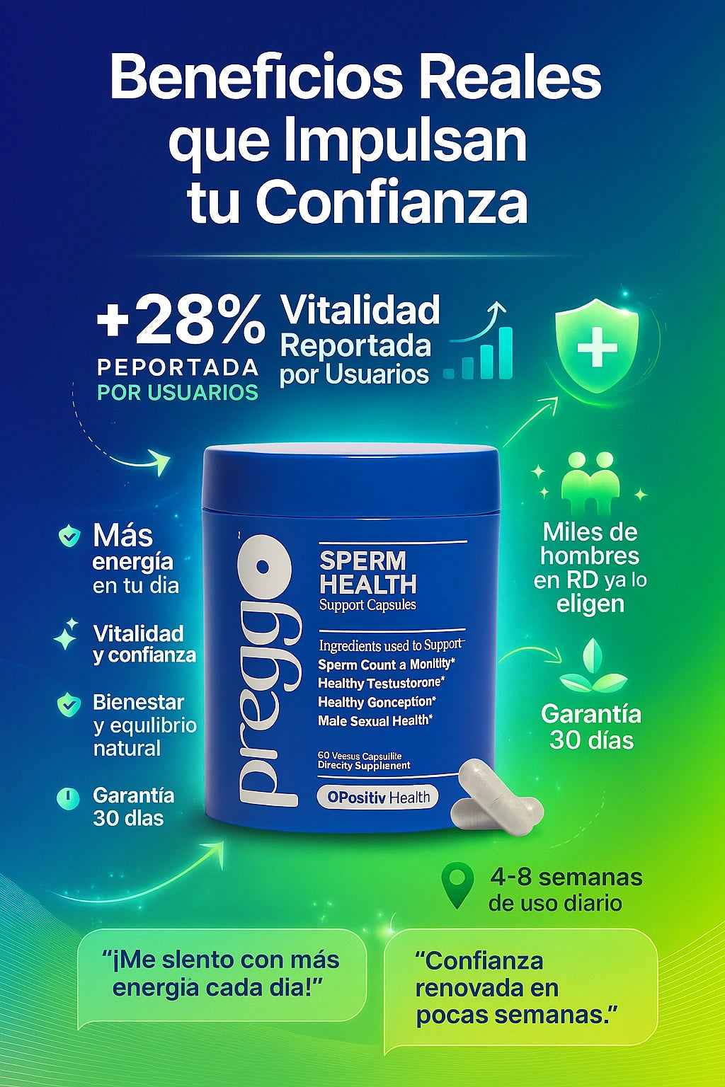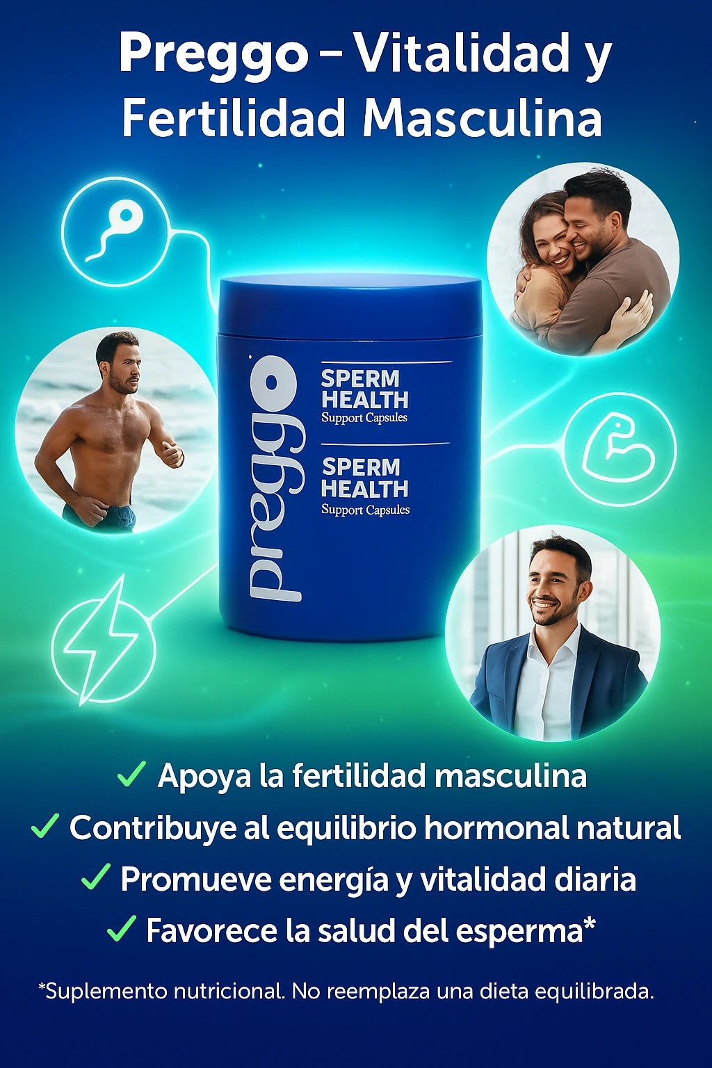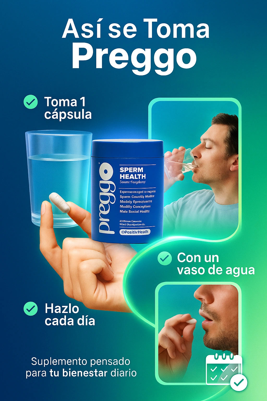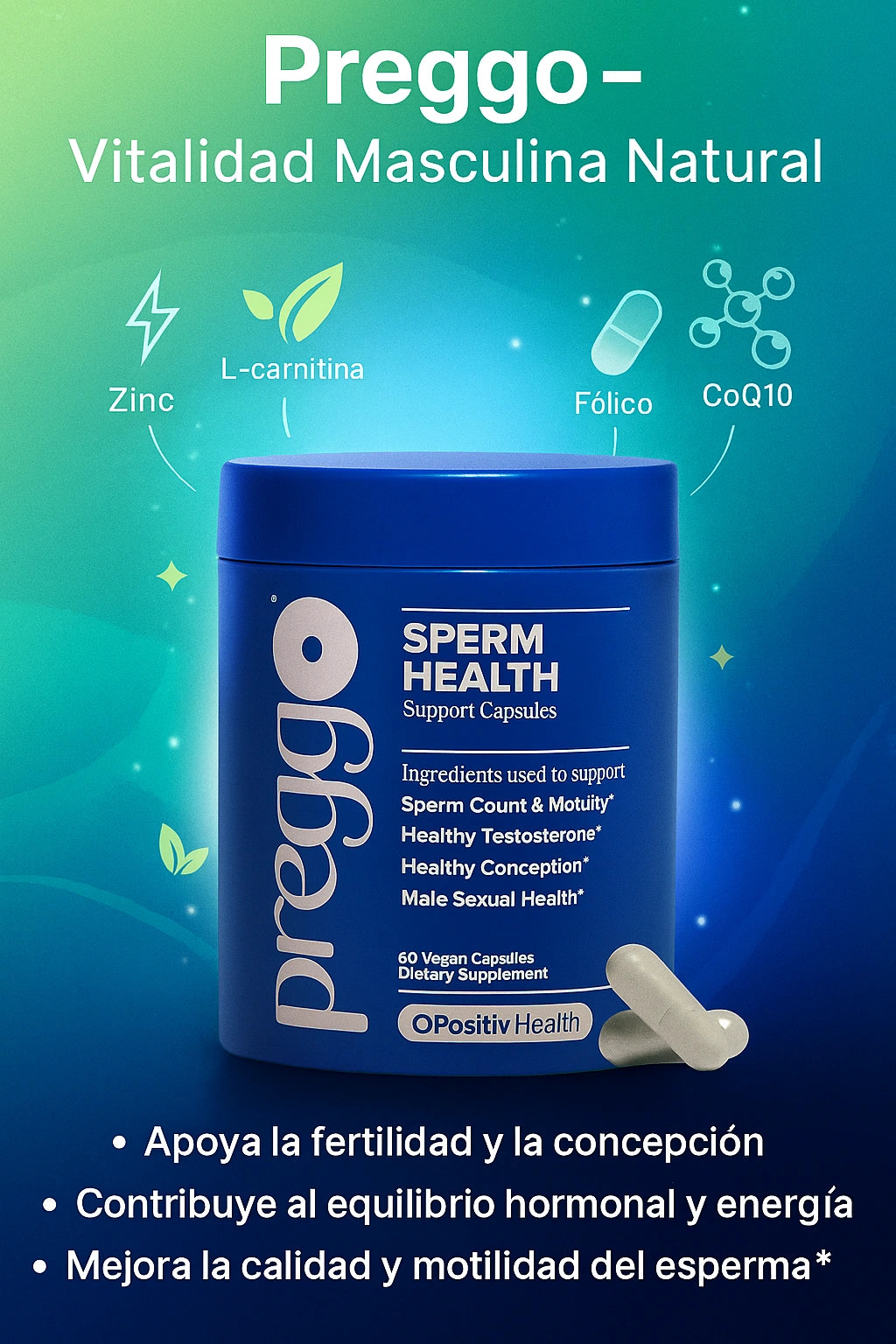 Preggo es un suplemento nutricional diseñado especialmente para apoyar la vitalidad masculina, la energía diaria y el bienestar . Contiene ingredientes clave como zinc, ácido fólico, L-carnitina, CoQ10 y antioxidantes que ayudan a mantener la salud del esperma y optimizar tu rendimiento natural.